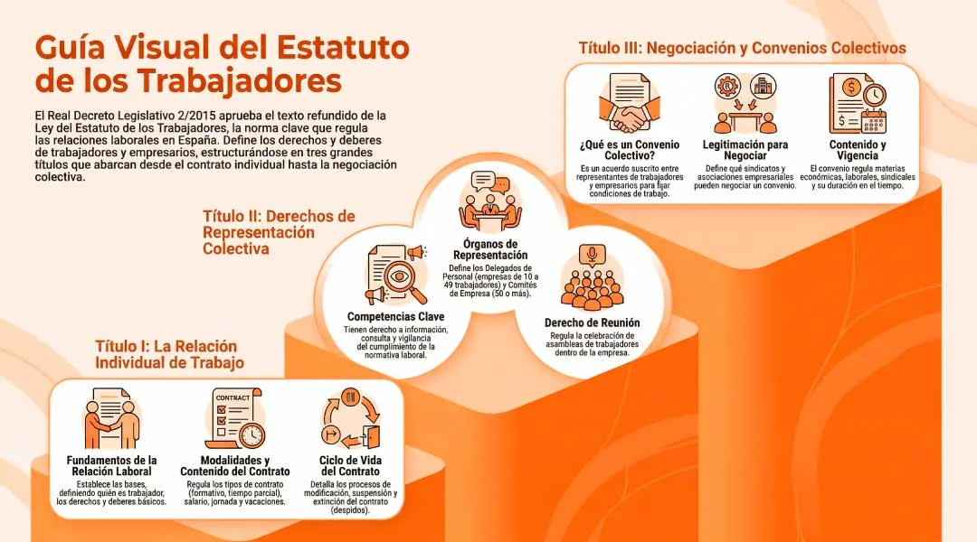 - Título III: De la negociación colectiva y de los convenios colectivos. Menos preguntado en oposiciones generales, pero vital para entender la jerarquía de las normas.